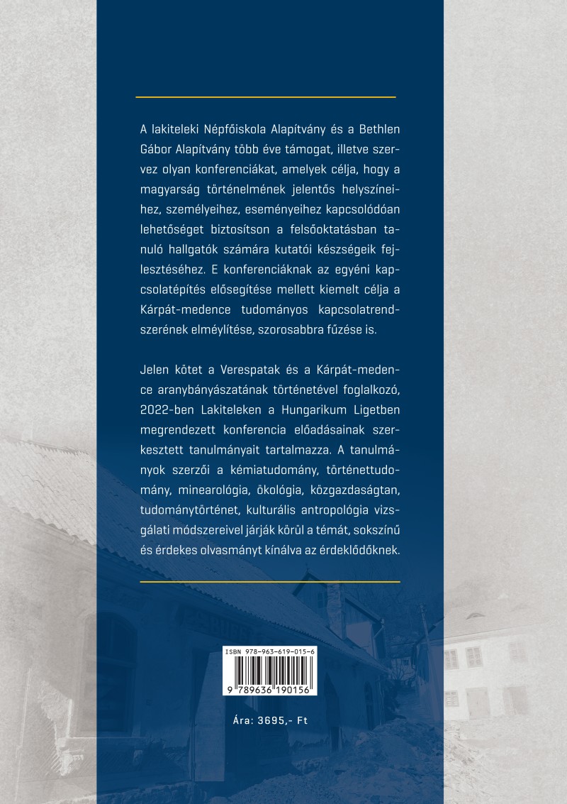 Jelen kötet a Verespatak és a Kárpát-medence aranybányászatának történetével foglalkozó, 2022-ben Lakiteleken a Hungarikum Ligetben megrendezett konferencia előadásainak szerkesztett tanulmányait tartalmazza. A tanulmányok szerzői a kémiatudomány, történettudomány, minearológia, ökológia, közgazdaságtan, tudománytörténet, kulturális antropológia vizsgálati módszereivel járják körül a témát, sokszínű és érdekes olvasmányt kínálva az érdeklődőknek.