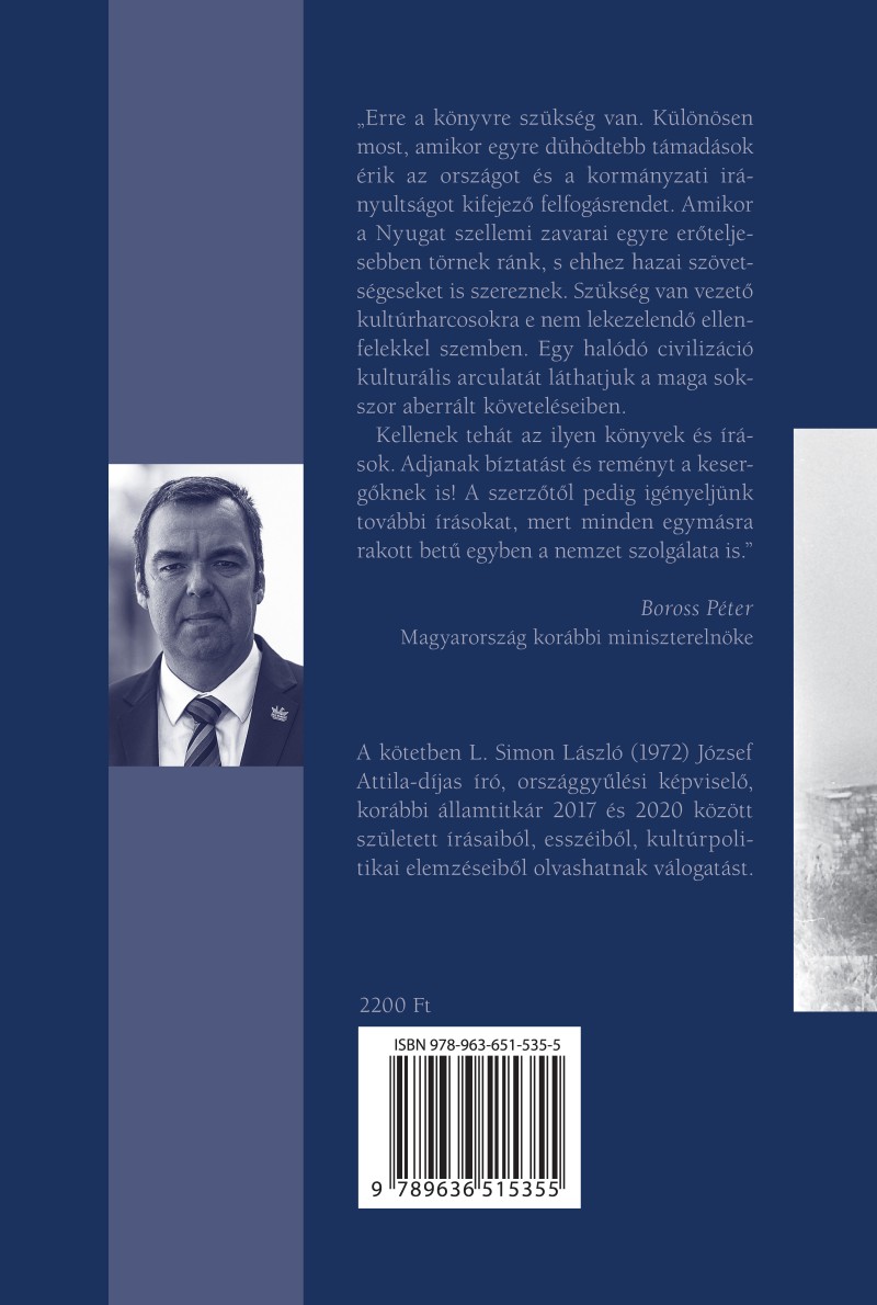 A kötetben L. Simon László (1972) József Attila-díjas író, országgyűlési képviselő, korábbi államtitkár 2017 és 2020 között született írásaiból, esszéiből, kultúrpolitikai elemzéseiből olvashatnak válogatást.